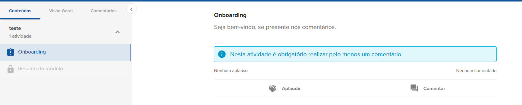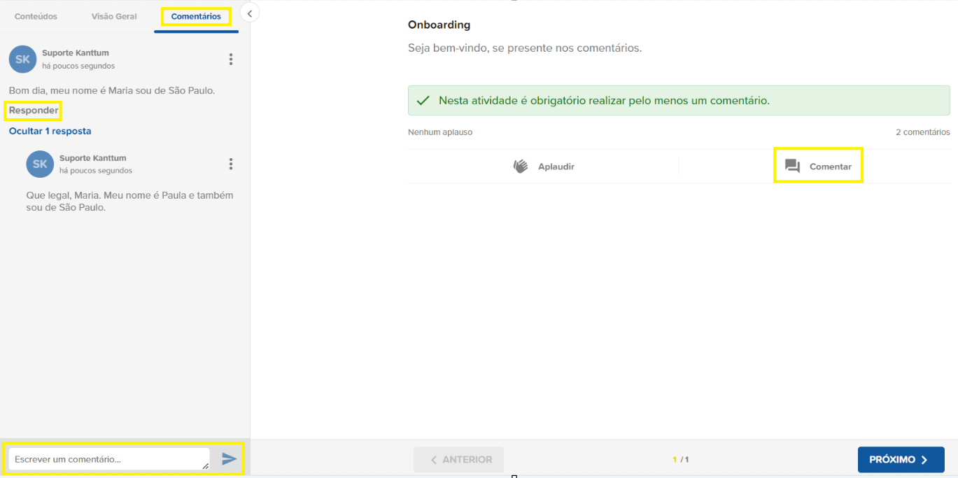 Dessa forma, uma vez dentro de um curso, para deixar um comentário o participante deve: