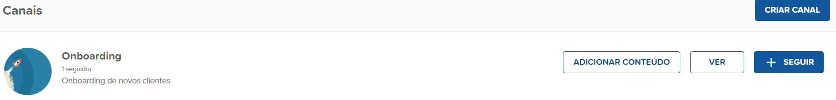 Após preenchimento dos campos, clique em "Salvar" e seu canal será criado. Nele terá 3 opções: adicionar conteúdo, ver e seguir.