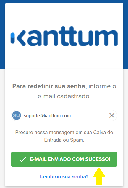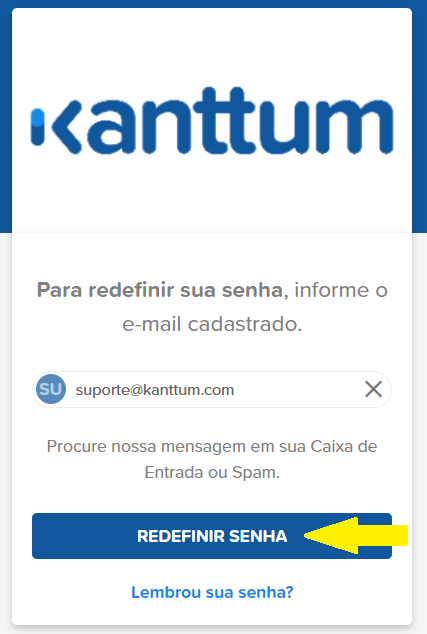 Um e-mail para redefinição de senha será enviado para o seu e-mail, basta abrir seu e-mail, localizar o e-mail da Kanttum e clicar para alterar sua senha.