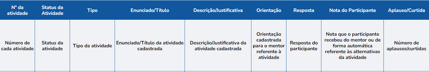 Com os dados desse relatório você pode, por exemplo, entender como foi o engajamento de cada participante de acordo com cada atividade de cada módulo de um curso específico. Podendo ter uma análise bem mais profunda sobre o desempenho.