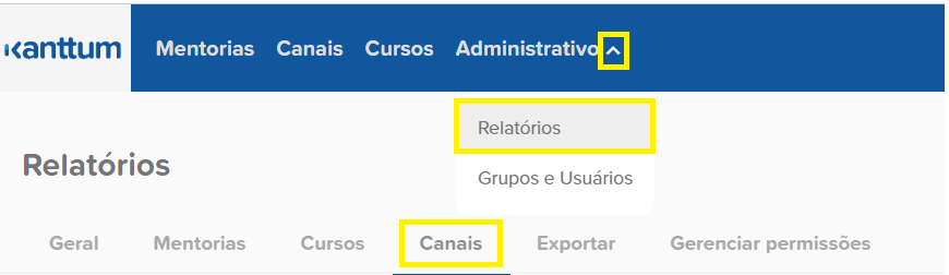 Os Relatórios de Canais, estão disponíveis na quarta aba de Relatórios.