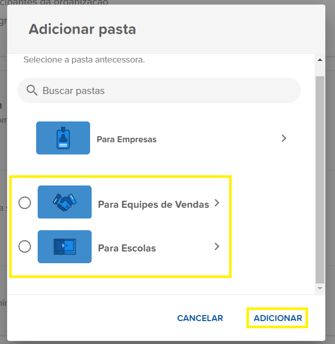 - Em Cursos, selecione a pasta desejada e clique em "VER PASTA"