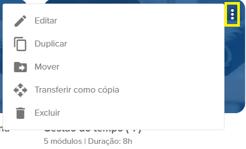 Com acesso de administrador ou editor de conteúdos você consegue editar, duplicar, mover, transferir ou excluir um curso.